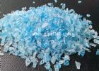 PET蓝色瓶片:大片在进行精加工而形成,要求无杂色,色泽鲜艳,烤后无色变。杂质控制万分之一以内,性能稳定,大小控制在12mm以内呈不规则片状